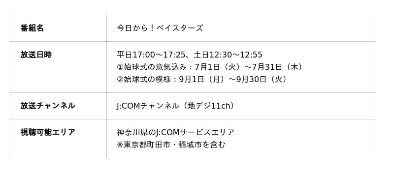 横浜DeNAベイスターズのオフィシャルスポンサーである株式会社ジェイコム湘南・神奈川(所在地:神奈川県横浜市、代表取締役社長:京克樹)は、2025年7月29日(火)から7月31日(木)の3日間に横浜スタジアムにて行われる、「キッズSTAR☆NIGHT2025 Supported by J:COM」のイベントスポンサーとして、冠試合を開催します。