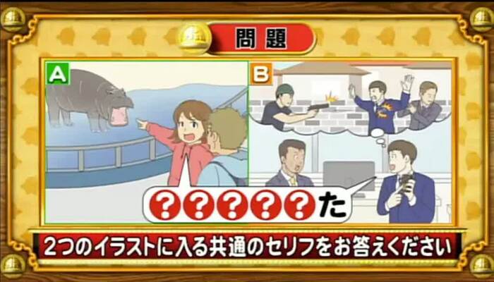 最後は、共通セリフ問題。次の2つのイラストに入る共通のセリフを答えてください。