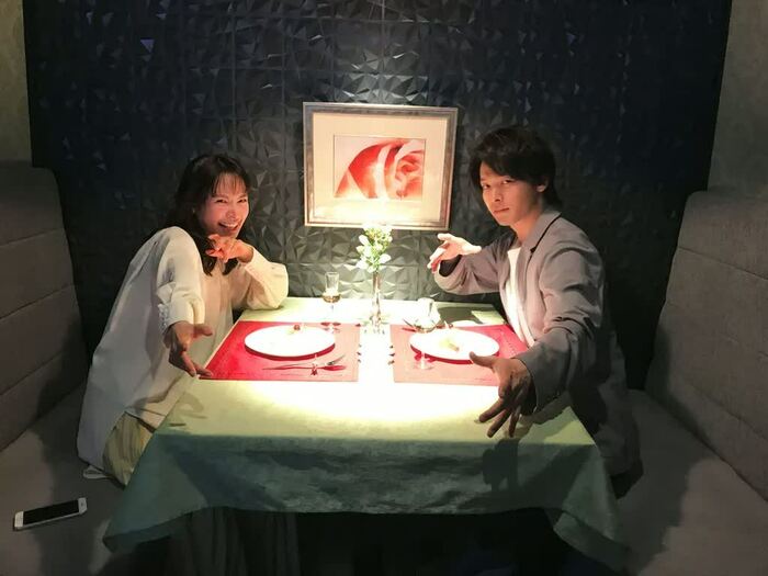 もう一枚公開されたオフショットは、プロポーズシーン撮影直後のもの。緊張した表情から⼀転、中村さんと関⽔さんの2⼈が楽し気にポーズを決めている写真となっています。