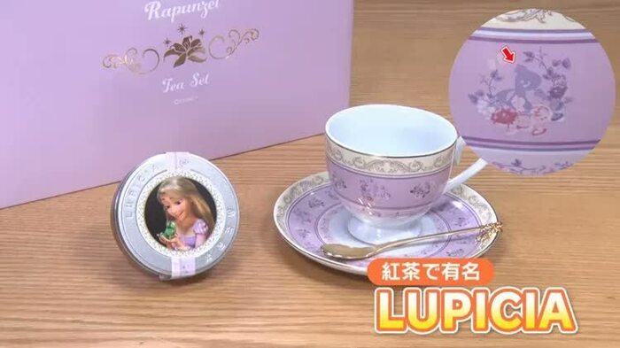 ラプンツェルは、紅茶で有名な「LUPICIA」のティーセットになって登場しました。フレーバードティーとカップ&ソーサー、スプーンが入っていて、ラプンツェルの世界観をイメージしたカップには隠れラプンツェルもいるそうです!