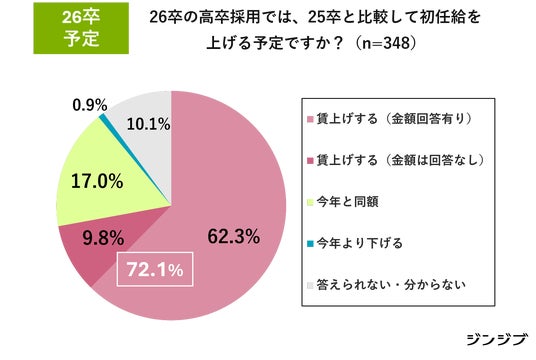 昨年と比較して26卒の初任給アップを予定する回答は72.1%。