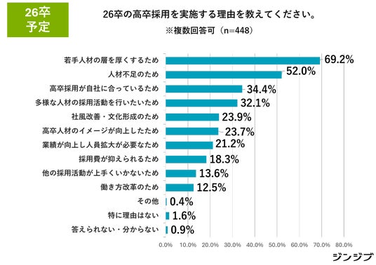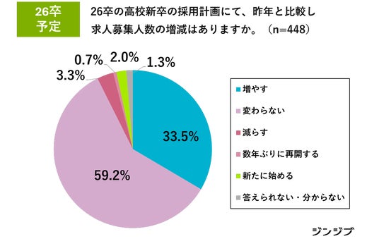 高校生の就職を支援している「ジンジブ」(大阪市)では、7月から本格的に始まる2026年3月卒(以下、26卒)の高卒採用の動向トピックについて、当社で実施した高卒採用の担当者へのアンケートや厚生労働省データをもとにまとめました。