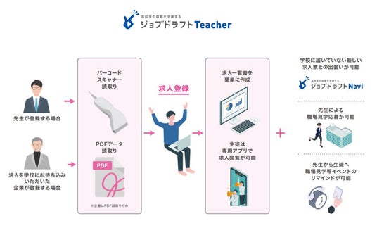 将来について考えるきっかけを与えるキャリア教育支援「ジョブドラフトCareer」や、これまでは文字情報のみの求人票でしか収集できなかった求人情報を、高校生に向けた発信をする就職情報アプリ「ジョブドラフトNavi」や、高校生のための合同企業説明会「ジョブドラフトFes」を運営し高校生が未来を自分の意思で形作るためのサービスを展開しております。