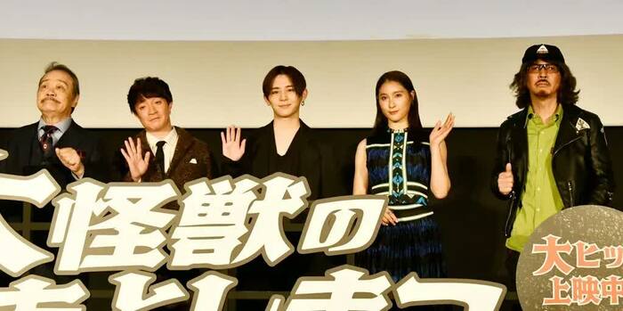 2月4日、映画「大怪獣のあとしまつ」の公開初日舞台挨拶が行われ、山田涼介さん(Hey! Say! JUMP)、土屋太鳳さん、濱田岳さん、西田敏行さん、三木聡監督が登壇しました。