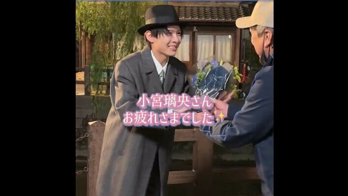 動画で小宮さんは、「オールアップです!」の声を受けて帽子を取って一礼すると、花束を受け取ってホッとしたような表情に。
