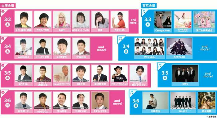 東京会場:Creepy Nuts/佐々木彩夏(ももいろクローバーZ)/ 浪江女子発組合 ほか