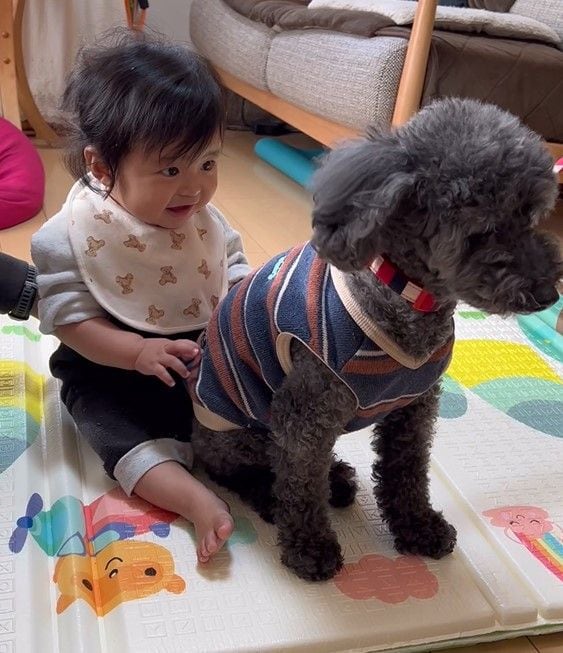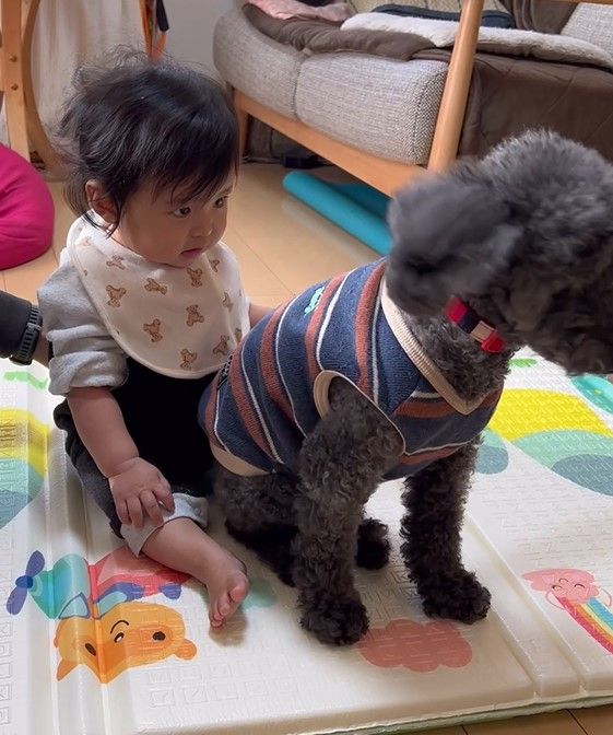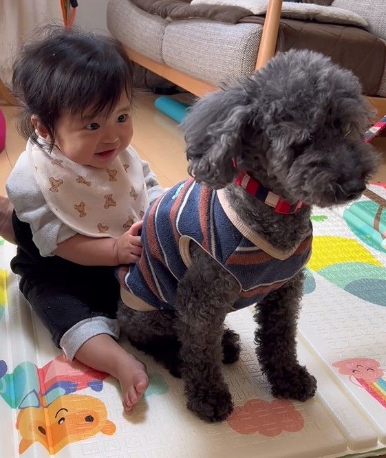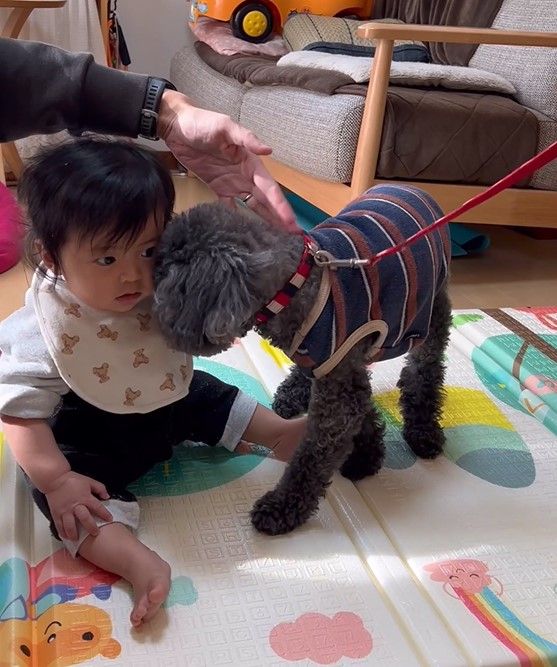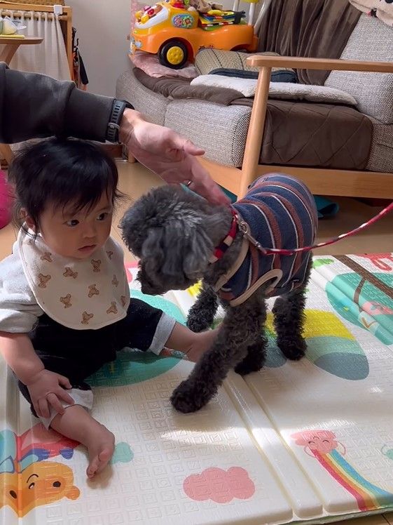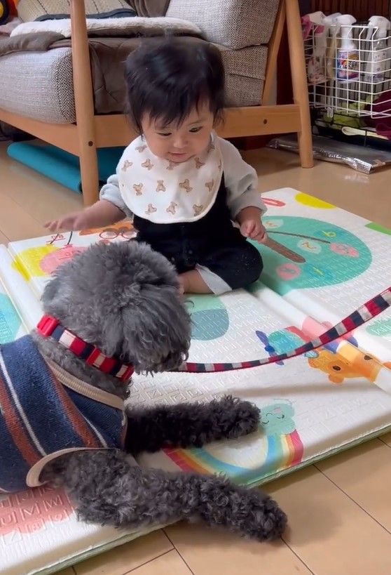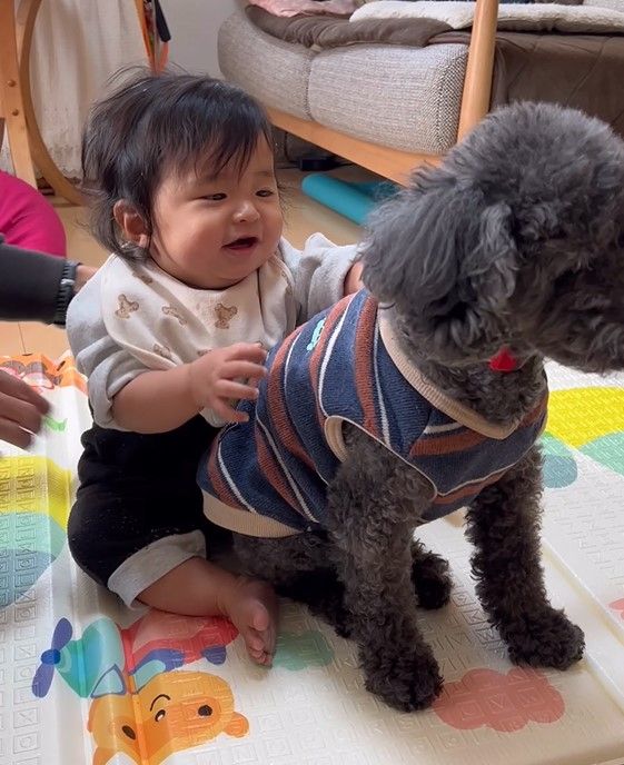 実は今回の初対面の瞬間は、りつくんがいつもおもちゃのワンちゃんを噛んでいたので、ママも心配だったそうですが、仲良くしている姿を見て、「こんなに目がキラキラで喜ぶ事が初めてだったのでびっくりしました!」と喜びを明かしてくれました。