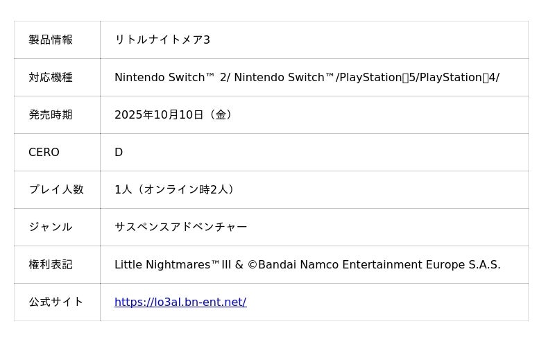 ■『リトルナイトメア3』公式サイトはこちら:https://lo3al.bn-ent.net/