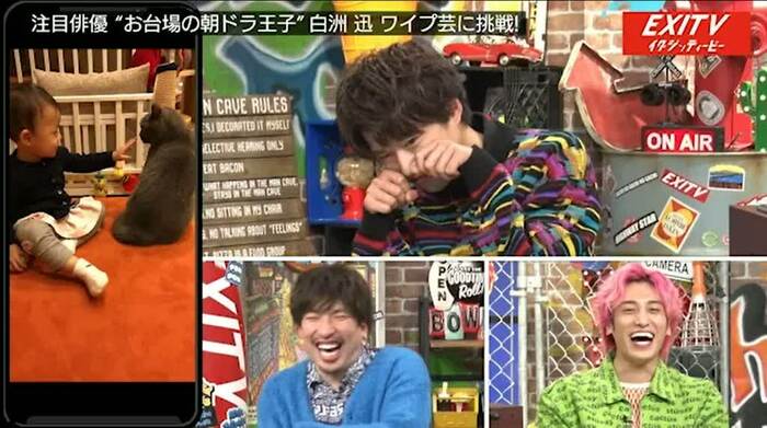 白洲さんのために、リアクションが取りやすい「かわいい猫と赤ちゃん」の映像でワイプ芸を実演してみることに。