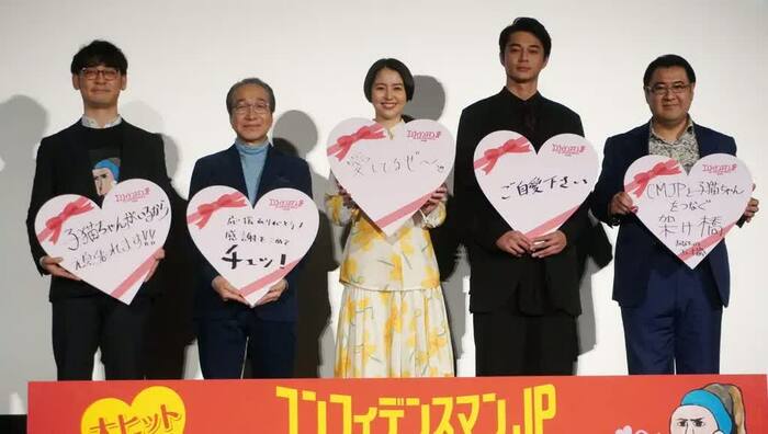 2月10日、映画「コンフィデンスマンJP 英雄編」の「大ヒット御礼!子猫ちゃんたちの集い Special~ダー子から愛を込めて~舞台挨拶」が行われ、長澤まさみさん、東出昌大さん、小手伸也さん、小日向文世さん、田中亮監督が登壇しました。