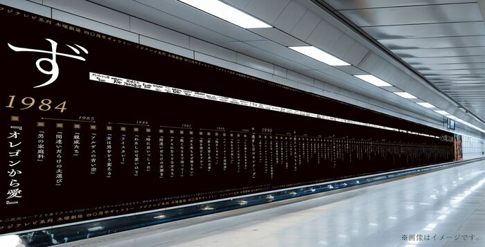 このたび、「木曜劇場」40周年を記念して、東急田園都市線渋谷駅地下1階に木曜劇場で放送された歴代157作品が並ぶ超巨大年表を、11月4日(月)から1週間にわたり掲出。