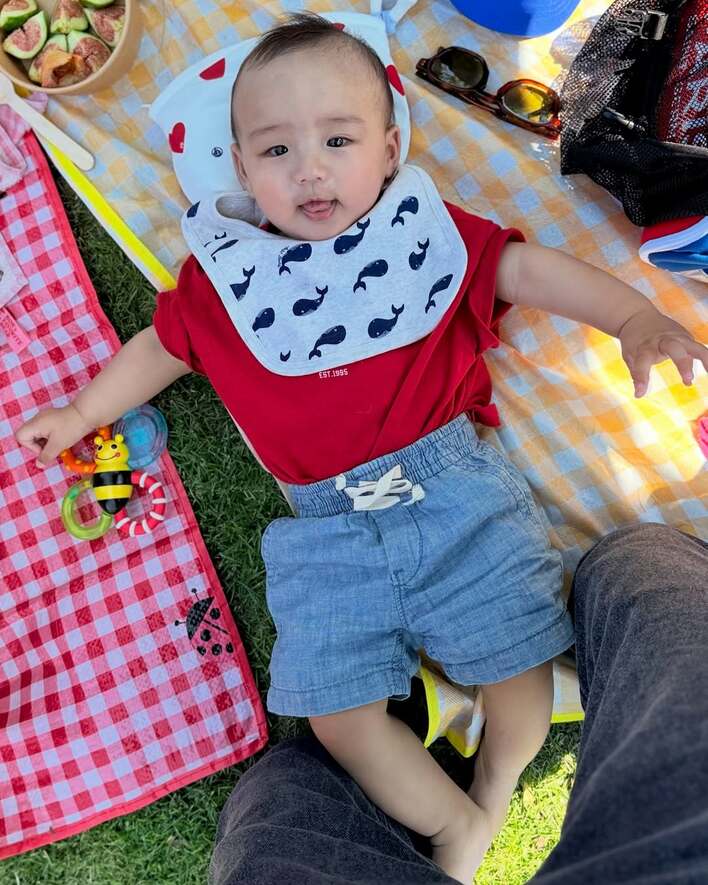 0歳長男とのおでかけショットを公開 笑顔で遊ぶ様子に反響
