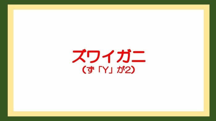 正解は「ズワイガニ(ず『Y』が2)」。