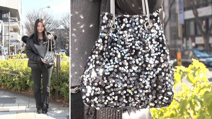 ワンポイントでも華やかになるのがギラギラの気軽さなのだそう。