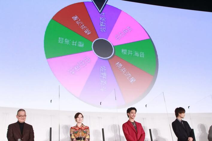 イベントでは、本作のテーマ「ギャンブル」にかけて、スクリーンに回答者以外の登壇者の名前が書かれたルーレットを使ったトークコーナーを実施。