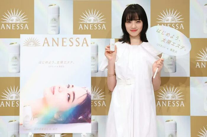 白のワンピース姿で登場した小松さん。新ミューズに選ばれた心境について「普段からアネッサを愛用していたので、『まさか私が出れるんだ』という驚きと、嬉しさがあり光栄だなと思いました」とコメントしました。