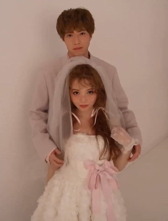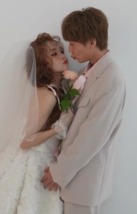 ピンクのバラを手にした桜井さんとぎしさんが顔を寄せ合い、至近距離で見つめ合いながらキスをしようとしている姿も公開!
