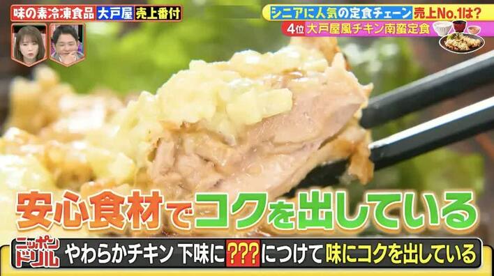 4位は「大戸屋風チキン南蛮定食」。ふっくら柔らかチキンに、濃厚タルタルソースと南蛮ダレのハーモニーが絶妙な商品です。