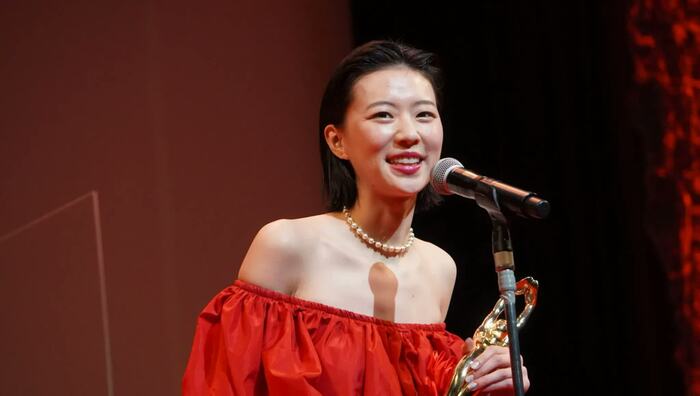 胸元が大胆に開いた赤いドレスで登場した片山は、「『茜色に焼かれる』なので、赤で攻めていこうかなと思いまして」とほほ笑み、「賞をいただけて、少しだけ自信がついたので、調子に乗らずにコツコツと続けていきたいです。願い事は口に出した方が言いと聞きましたので…フランスに憧れているので、カンヌのレッドカーペットを歩きたいです」と夢を明かしました。