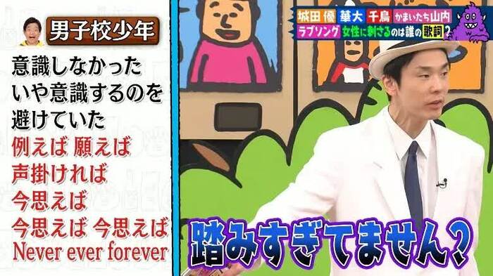 濱家:例えば、願えば、声掛ければ、今思えば、今思えば、今思えば、Never ever forever…踏みすぎてません?