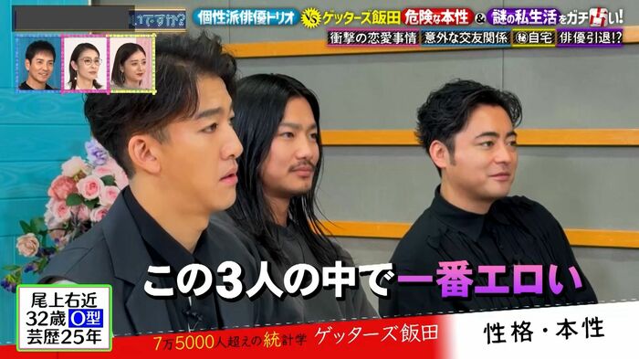 ゲッターズさんの占いは徐々にディープに。「3人のなかで一番エロいのは右近さん。根がだいぶスケベ」と告げると、山田さんと野村さんは「顔にも出ているね」「スケベそう!」とニヤニヤ。