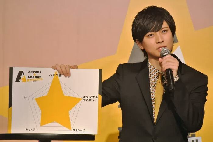 さらに、岡宮さんはイベントのオリジナルマスコットを自ら考案。「『次世代、バスケ、俳優』を融合したもの、俳優は何者にでもなれるという意味を込めて、7色をとり入れたキャラクターを考えました」と説明しました。