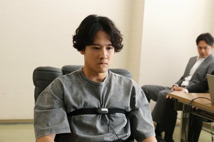 今回公開されたのは、渡部紀明(葉山)が事件の重要参考人としてポリグラフ検査を実施している場面。検査器具で固定され、主人公の土門に追い詰められる緊迫感あるシーンです。