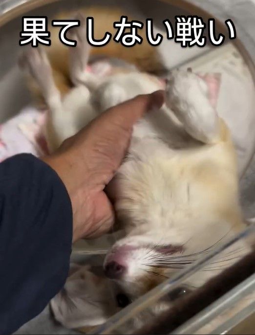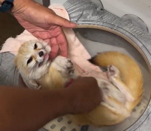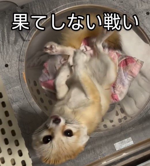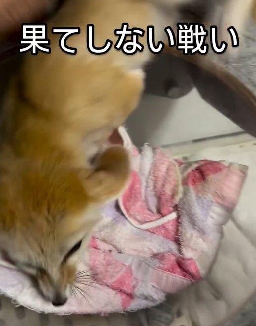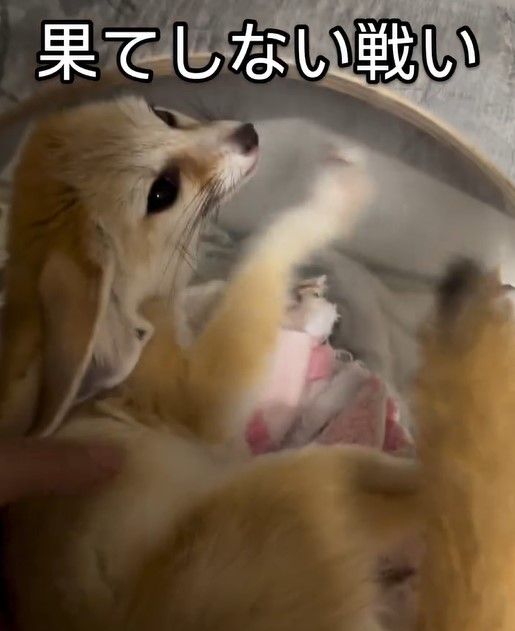 甘えん坊フェネックVSタオルを替えたい飼い主