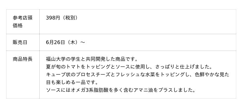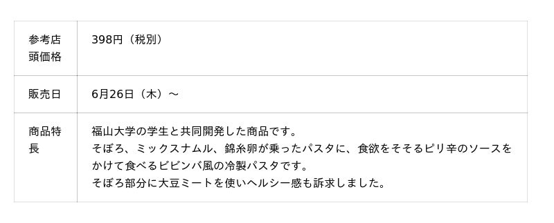 株式会社ダイエットクックサプライは学校法人 福山大学 生命工学部 健康栄養科学科の学生と共同で、暑い夏に向けて冷製パスタ2品を開発。中四国エリアの一部量販店にて期間限定で販売しています。