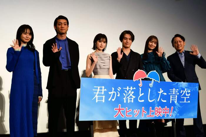 2月19日、映画「君が落とした青空」の公開記念舞台挨拶が行われ、W主演を務める福本莉子さん、松田元太さん(Travis Japan/ジャニーズJr.)、共演の板垣瑞生さん、横田真悠さん、莉子さん、Yuki Saito監督が登壇しました。