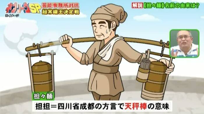 中華料理の名前を答える問題では、地理担当の村瀬哲史先生が「担々麺」の名前の由来について教えてくれました。