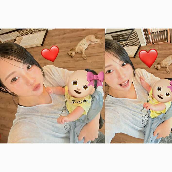 るな「幸せな空間」赤ちゃん&わんこの3ショットが「可愛すぎ!」