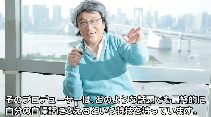 「そのプロデューサーは、どのような話題でも最終的に自分の自慢話に変えるという特技を持っています」