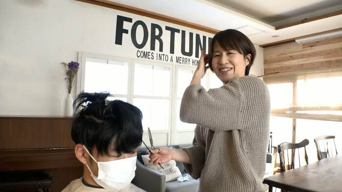 自宅では、家族全員の髪をchikoさんがカットするというルールが。