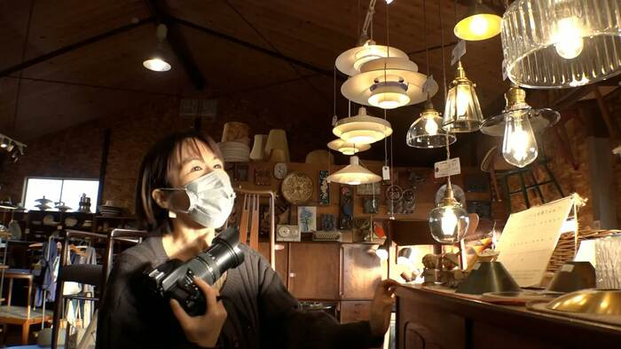 料理の味よりも内装に目がいくchikoさんは、店員さんと話しつつ、ひと通り店内の様子を褒めると、気に入ったランプを購入しました。