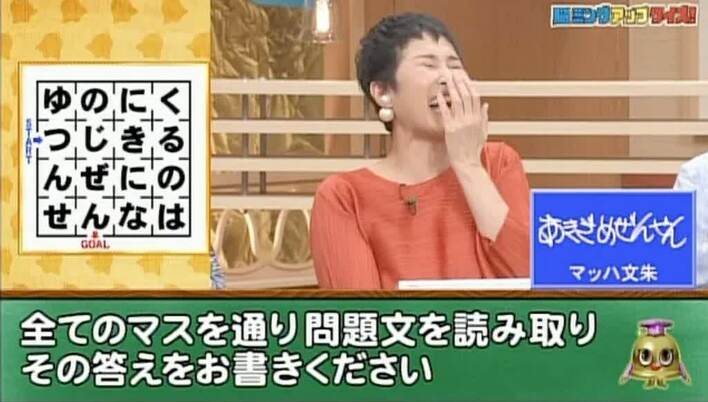 マッハさんの答えは「あきさめぜんせん」。惜しいですが、不正解です。