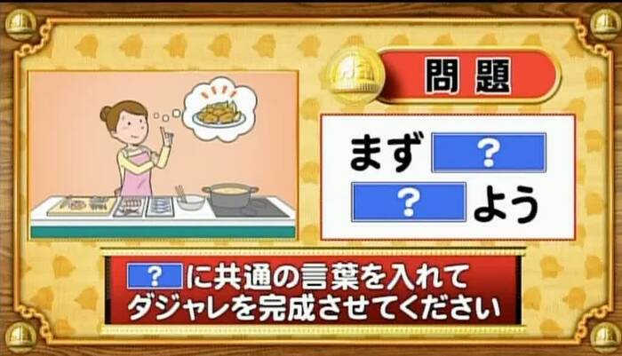 次は、ダジャレ穴埋め問題。次の「?」に共通する言葉を入れてダジャレを完成させてください。