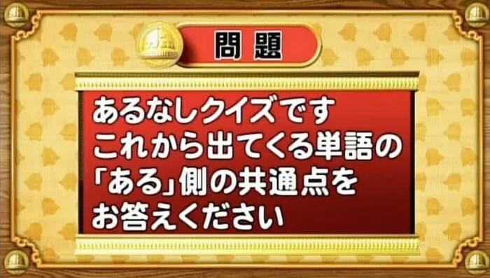 最後は、あるなしクイズ。次の単語の「ある」側の共通点を答えてください。