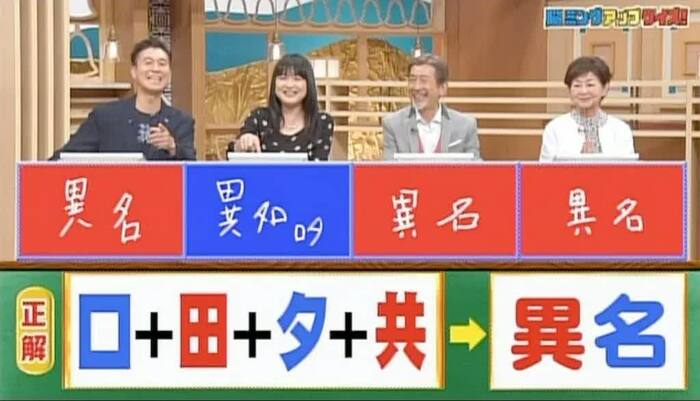 正解は「異名」。高橋さん、川端さん、柴田さんが見事正解。