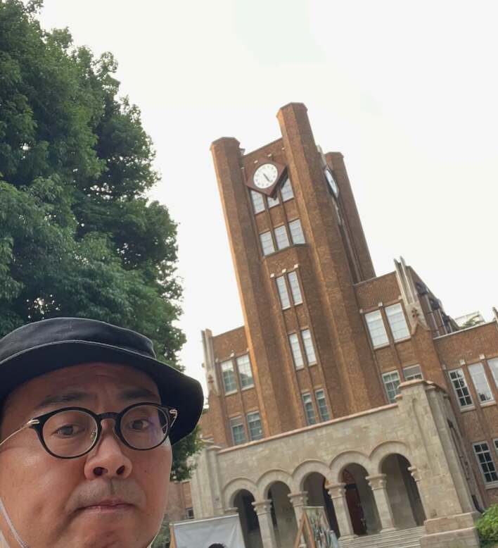 投稿では、受験会場でしょうか、東京大学の駒場キャンパス内にある時計台をバックに、メガネ姿で自撮りしたショットを公開しています。