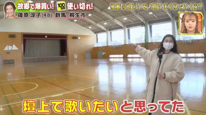 体育館では、篠原さんが母校の校歌を口ずさむ姿も。「私、スカウトされたわけではなくて、自分の意志でオーディションを受けて、中2から芸能活動を始めて。当時の私は、“芸能人になったらこの体育館のステージで歌う”のが夢でしたね」と回顧しました。