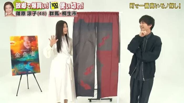 篠原さんはここで、「金魚妻」(Netflix)で共演している岩田剛典さんのために「金魚柄の暖簾(のれん)」を爆買いし、後日、岩田さんへプレゼント。