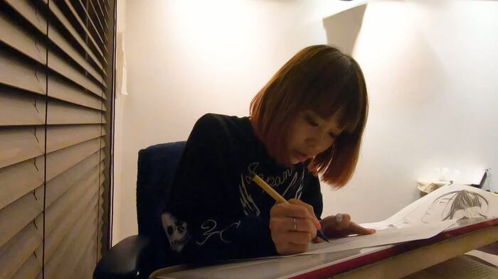 「パソコンで描くのが合理的だっていうのは分かっているけど、漫画を描くこと自体が合理的ではない博打(ばくち)みたいな仕事。自分が楽しんでやるのは絶対に捨てない、それが読む人への誠実さだと思っていて」といい、紙に漫画を描き上げていくことが好きだと語った。