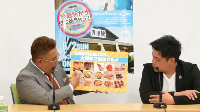 この番組は、サンドウィッチマン&いとうあさこ&佐藤栞里が、 ローカル線の終着駅で“超地域限定”の魅力を徹底調査するというもの。今回、サンドウィッチマンは、弘南鉄道の終着駅である、青森県南津軽郡の大鰐(おおわに)駅に降り立ち、ディープなロケを敢行した。