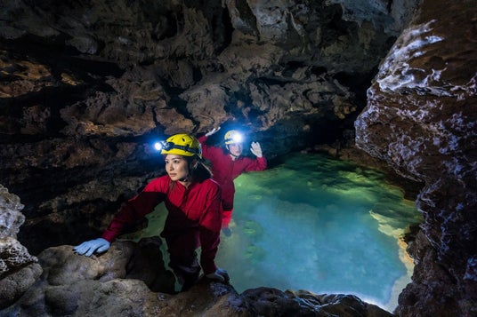 珊瑚礁の海に囲まれ、亜熱帯の島々が連なる沖縄には、600カ所以上の鍾乳洞が存在します。そのなかで最も巨大な鍾乳洞が「玉泉洞」です。愛媛大学学術探検部による1967年から7年間の探検・調査において全長5,000mに及ぶ大鍾乳洞であることが明らかになりました。現在玉泉洞は890mを観光洞エリアとして一般公開し、残りの4,000m以上を研究用として保存しています。 洞くつ探検ツアーでは普段立ち入ることのできない未公開エリアを進みます。