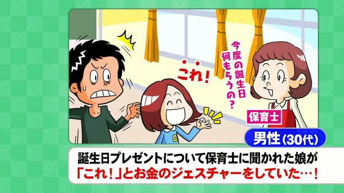 「娘との会話で、手でお金の形を作るジェスチャーを使っていたら、保育士さんの前で娘がそのジェスチャーをしていて反省」(30代男性)、「娘が椅子に座る時に『よっこいしょ』と言っていて恥ずかしかった!」(30代女性)というエピソードも届きました。