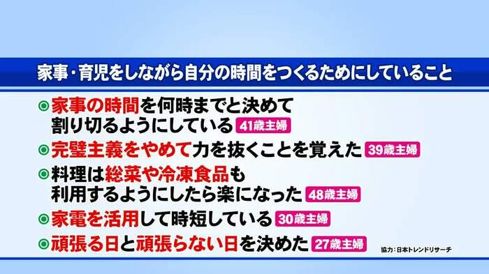 「1、3歳の子を育てる専業主婦。家事と育児に追われて自分の時間が取れない」という30代女性のエピソードが紹介されると、番組公式SNSには「育児は終わりがない」「子育て中は、自分時間なんてなかった」「旦那も名もなき家事をやるべき」と共感の声が殺到!