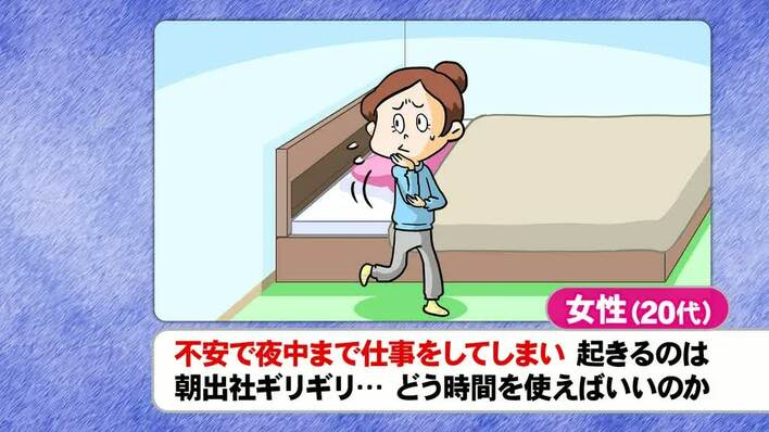 「在宅&フレックスの仕事をしていると、つい家事が目についてしまい、深夜に仕事をすることが多い」、「転職に向けて資格の勉強をしているが、やりたいことがたくさんあって時間が足りない気分になる」(ともに20代女性)というお悩みも登場。