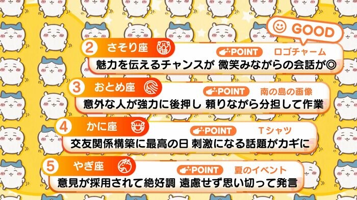 『めざましテレビ』で放送中の「ちいかわ占い」 テレビ放送がない日はお休みで、月~土:朝7時以降に更新予定です。