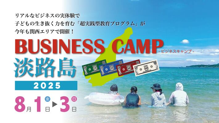 一般社団法人ティーンエイジャービジネス協会とこども未来コンパスは、2025年8月1日(金)~3日(日)に兵庫県淡路島のキャンプ場「FBI AWAJI」にて、子ども向け起業体験イベント「ビジネスキャンプ淡路島」を開催します。